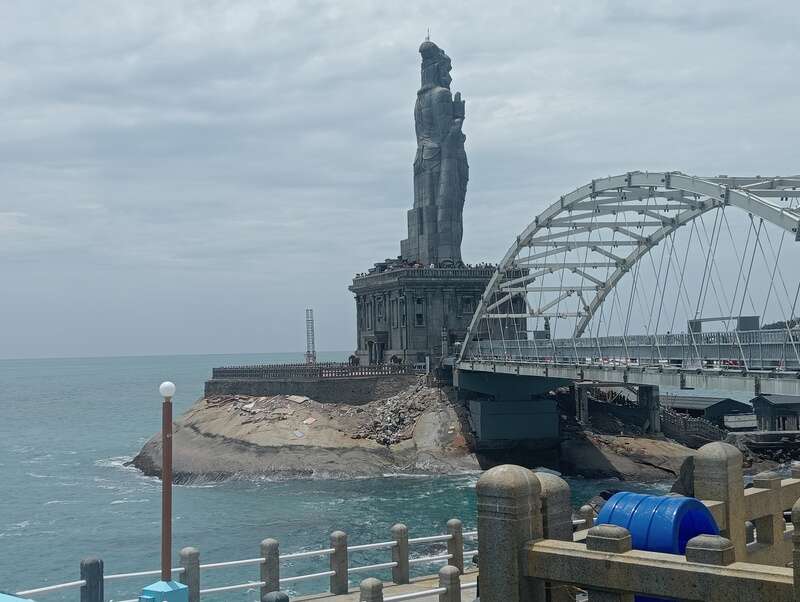 Vivekananda Rock & Thiruvalluvar Statue are 2 attractions to be viewed simultaneously. There’s a common ferry ride serving both, with a glass gloored fly-bridge between the two islands.